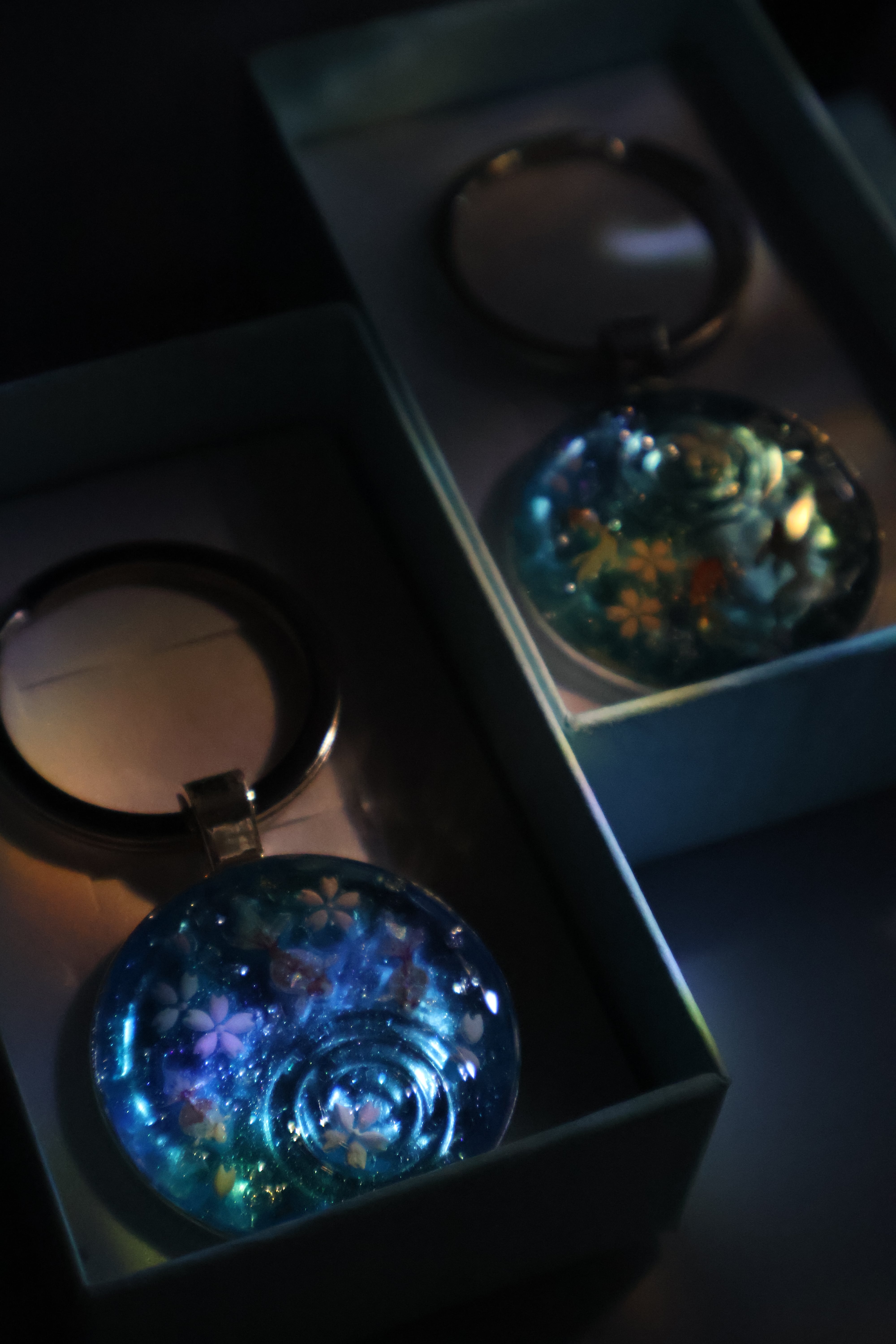そんな想いから、水の透明感と波紋をレジンで表現した作品が生まれました。